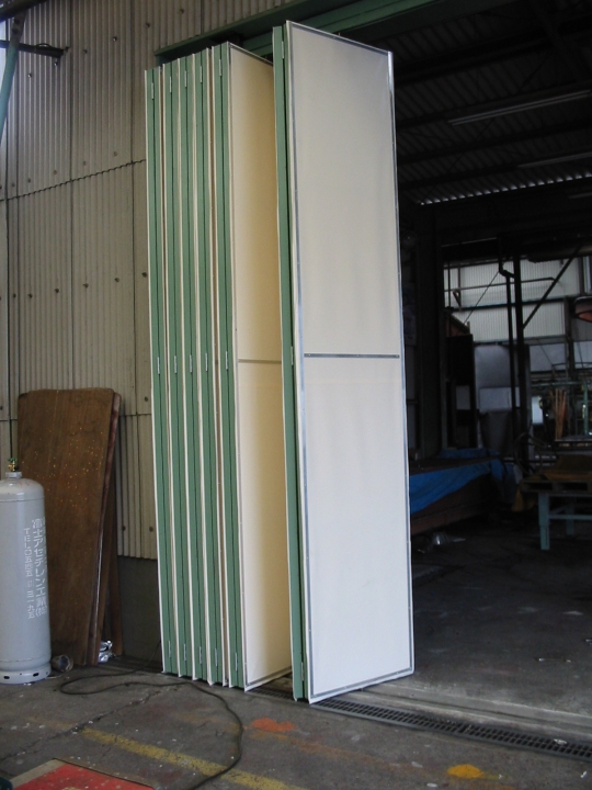 ユーザー様より、通常のカーテン、ポール式では無く、引戸の様に戸締りが出来て、開口は大きくしたいとのご要望を頂き、カーテン扉のご提案をさせて頂きました。