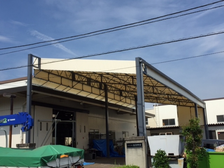 個人住宅のオーニング、店舗などのテント看板、倉庫などの荷捌き、工場の間仕切りカーテンなど一般の方から法人様まで対応しております。