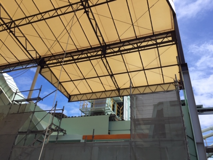 お店のテントやシートハウス、テント倉庫、オーニングなどのテント生地の張り替え、交換作業なども対応しております。