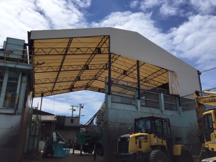 個人住宅のオーニング、店舗などのテント看板、倉庫などの荷捌き、工場の間仕切りカーテンなど一般の方から法人様まで対応しております。