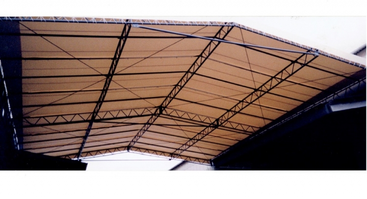 防炎テント生地を使用し、採光性も考慮したうえで材質を選択致しましたので、昼間は屋根があっても照明などは不要で自然光を取り込み、明るさを確保しております。