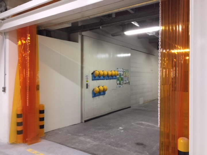 二か所目は、のれんカーテンw4000xH3000大型の製品。出し入れ時は左右に開口依頼がありADアコーディオンを採用致しました。