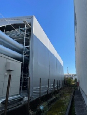 ユーザー様より設備からの騒音対策と雨よけを兼ねテント屋根の施工をご依頼頂きました、(防音シート仕様)
