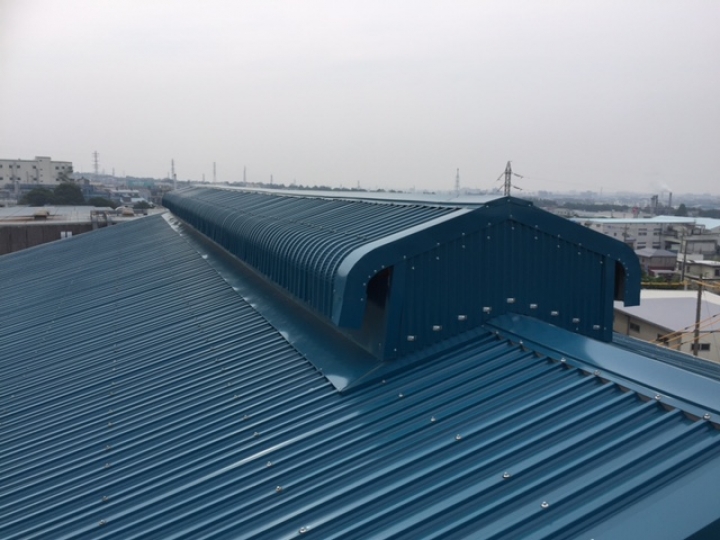 工場天端(地上21m)の換気口に左右で4.2xL24mの防鳥用(鳩対策)を取り付けさせて頂きました。